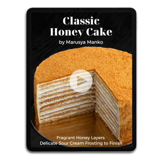 Together with the queen of honey cake Chef Marusya Manko, you will be able to master the technique of making a classic honey cake, which combines fragrant honey layers, airy, delicate and light sour cream and buttercream, which is suitable for use in any recipe.