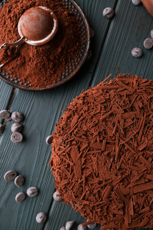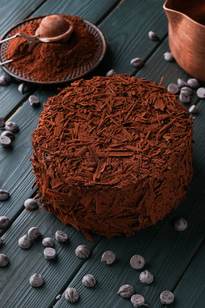 With the addition of elegant dark chocolate shavings, this cake is sure to captivate your senses.