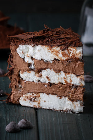 Chocolate Dream: Meringue Cake with Cream Cheese Frosting & Dark Shavings