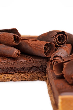 An infallible flavor combination from chef Oleksandr Trofimenkov: shortcrust pastry, chocolate and cream is complemented by a crispy base and a chocolate biscuit without flour.