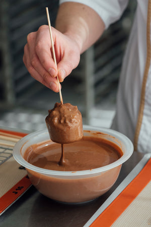 8. Coating the tea-cakes with chocolate glaze with nuts