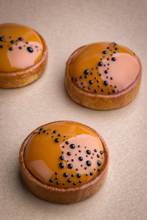 The brand chef Olexander Trofimenkov combined in a tartlet: baked cream, baked sponge and perfectly baked classic almond shortcrust dough.