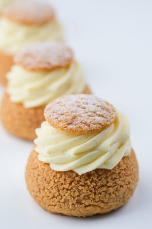 Explore the creation of an indulgent Diplomat cream with vanilla custard for the center of each choux.