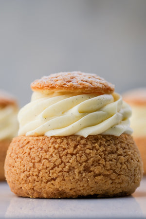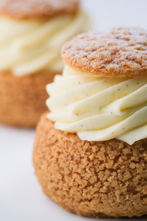 Cream puffs are delightful pastries filled with cream and topped with a crispy craquelin.