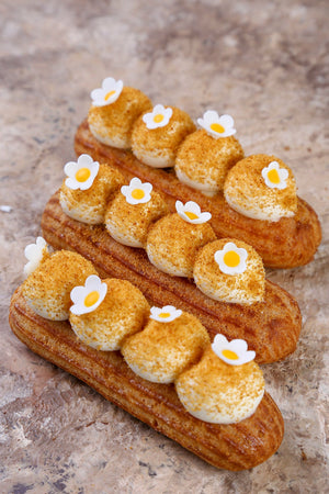 Introducing our Honey Cake Eclair, crafted with classic éclair choux pastry piped and baked to perfection.