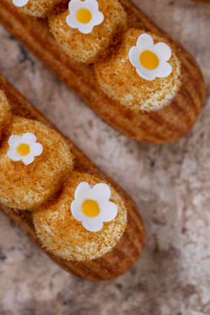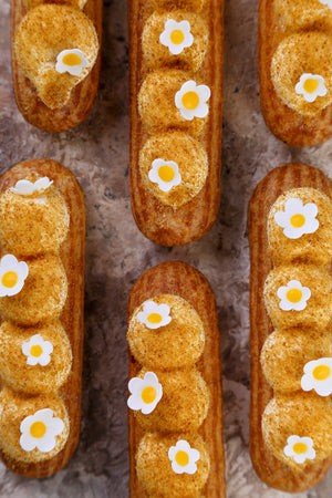 Golden Éclair Delight: Choux Pastry & Honey Sponge, Chantilly & Elegant Décor