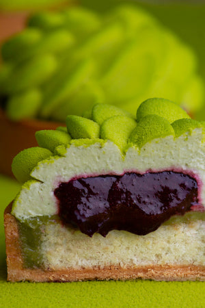 Ganache with matcha tea inside gives the tartlet the rich flavor of matcha tea and perfectly combines with the bright cherry flavor.