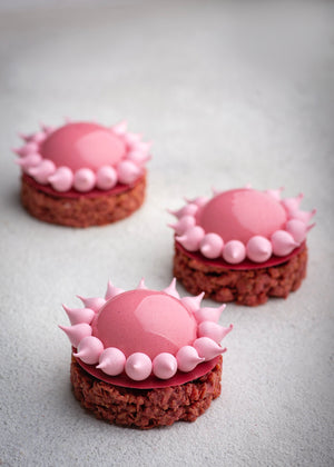 Tartlet is simple in preparation, however, it has many recipes and techniques: reconstructed shortcrust dough, almond crumble, whipped ganache with raspberry, french meringue and raspberry coulis.