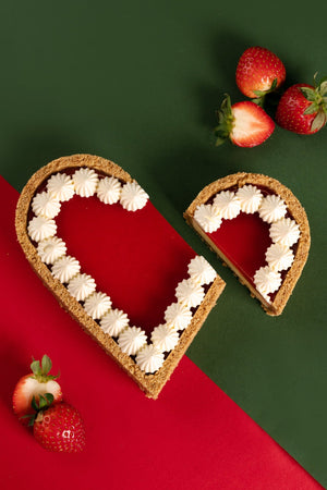 The Strawberry Heart is a classic version of baked cheesecake with vanilla. To make it charming, let’s bake it in the heart shape.